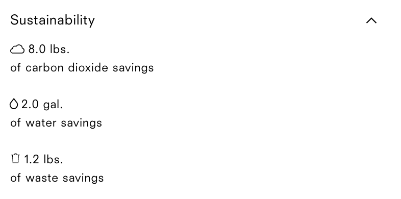 In addition, every product’s page shows you how the item compares to others in terms of their individual impact, aka where it stands on the “Ref scale” under the “sustainability” tab.